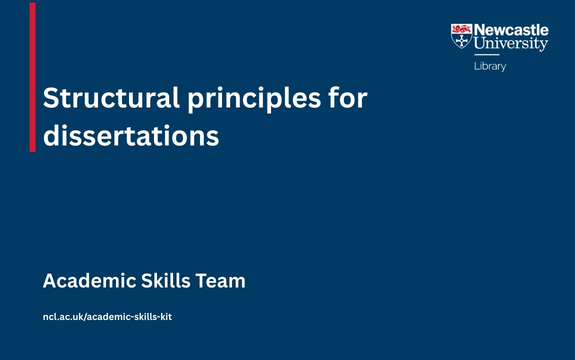 A dissertation or extended piece of writing can have several different sections making up its overall structure. For more information on the different types of writing you might use, and what to include in some of the key sections of your project, take a look at these resources.