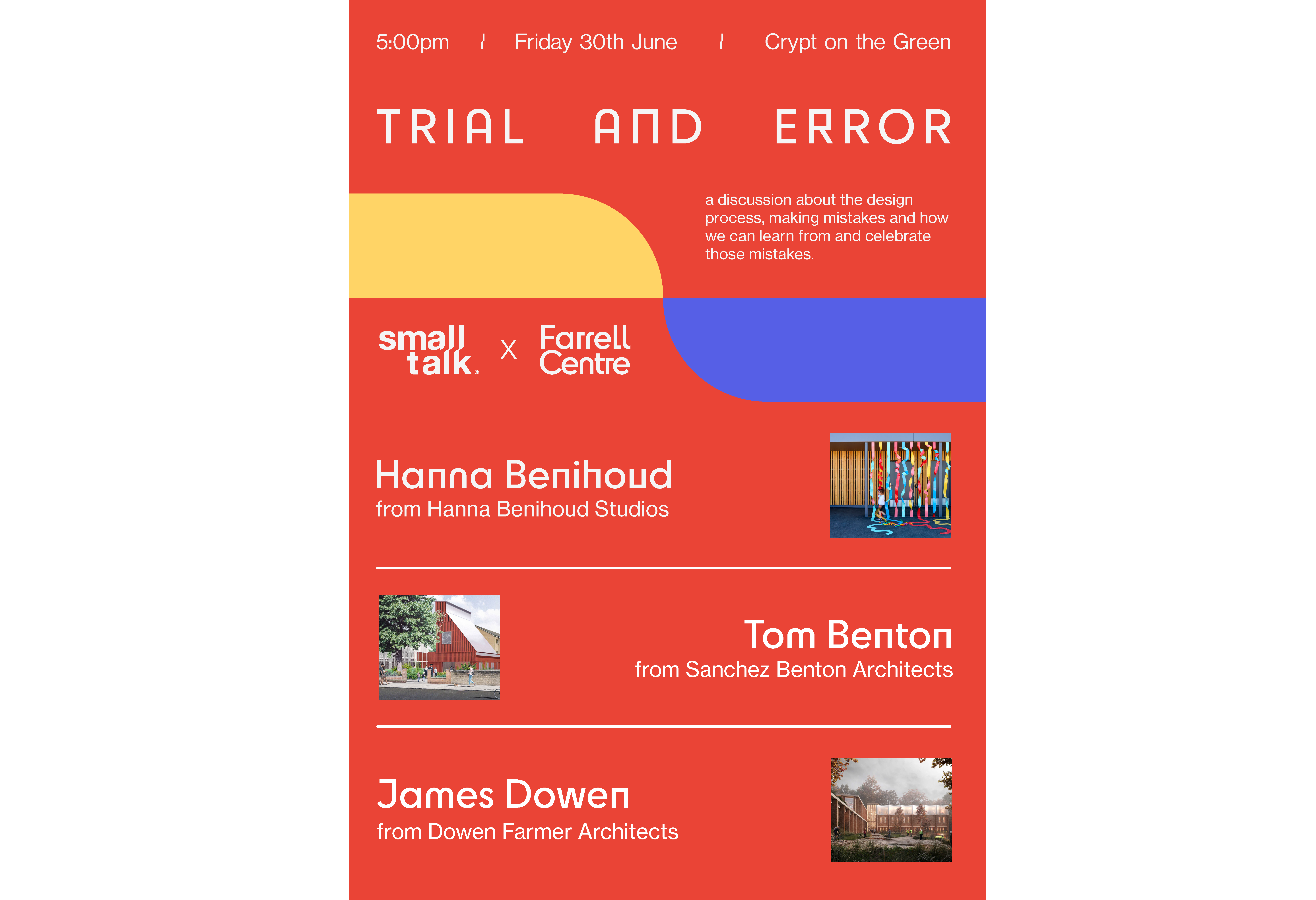 Join us at Newcastle University APL’s London Degree Show for a special pre-opening event. Chaired by Adam Schell and Louis Gardener - Hanna Benihoud, James Dowen and Tom Benton will discuss the idea of 'Trial and Error'. This Small Talk will focus on discussion around the design process, making mistakes and how we can learn from and celebrate those mistakes before opening up to questions from the audience.