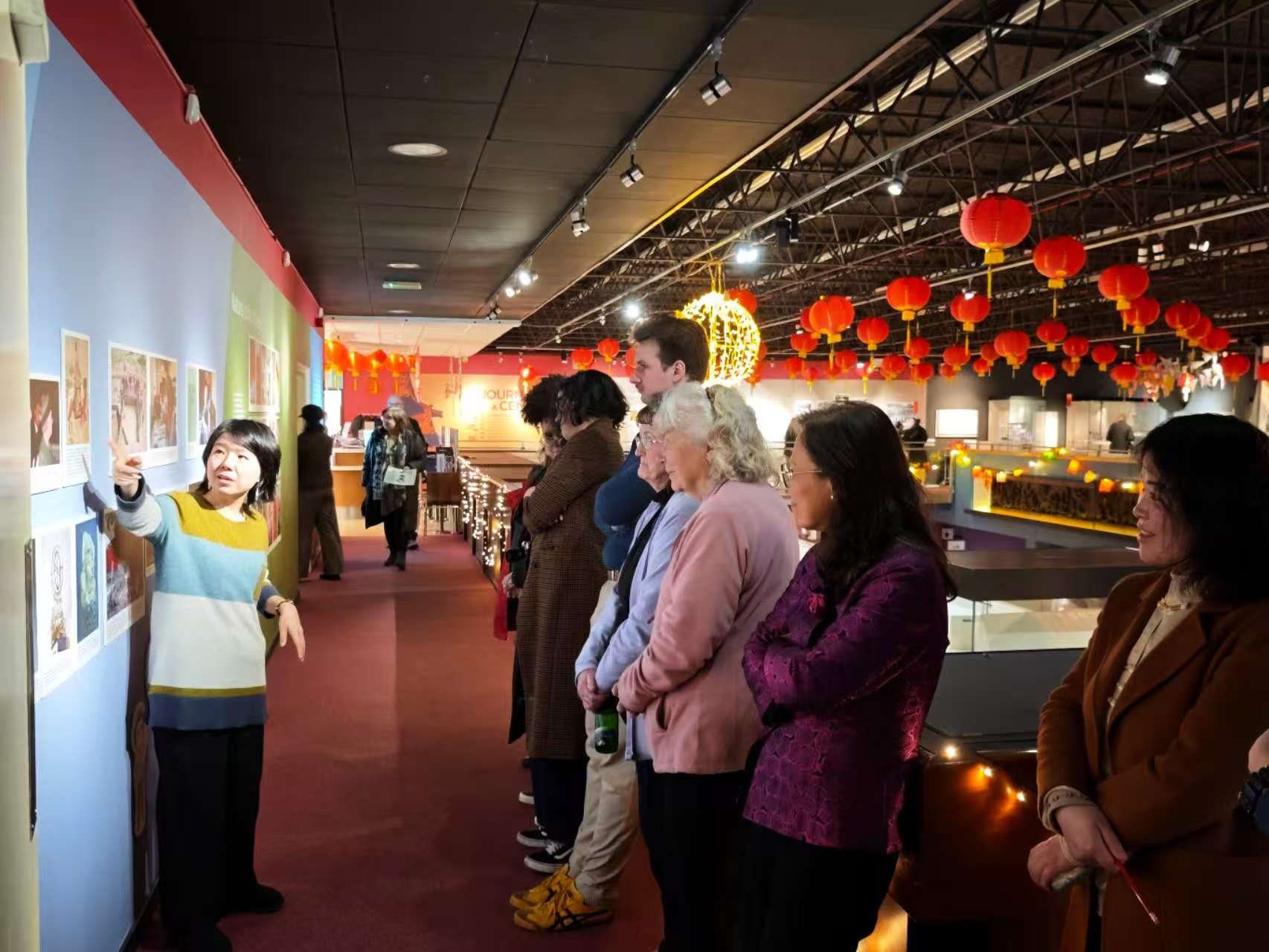 The second phase was held on Sunday, 1 March. Professor Su Yuxiao, together with government-sponsored teacher Wang Miao, led a group of 12 teachers and students to the museum for an educational visit. Participants included students from the Confucius Institute’s HSK evening classes, weekend Chinese school pupils, and members of Tai Chi classes held at local libraries. The visit focused on the special exhibition “A Century’s Journey: From the Forbidden City to the Palace Museum” as well as the museum’s permanent Chinese gallery.